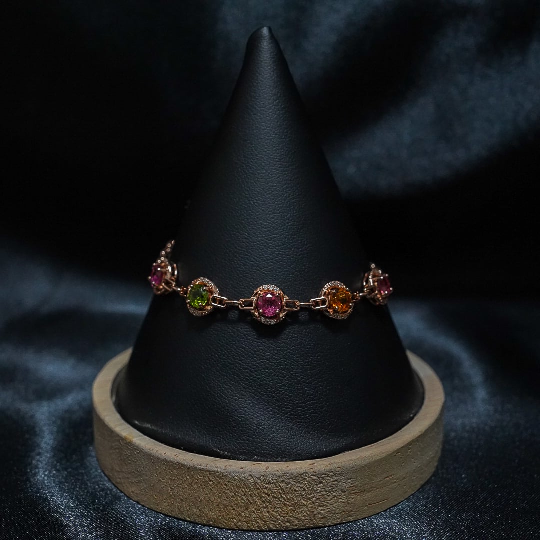 素材:トルマリン、シルバー925、ピンクゴールドメッキ、ジルコニア